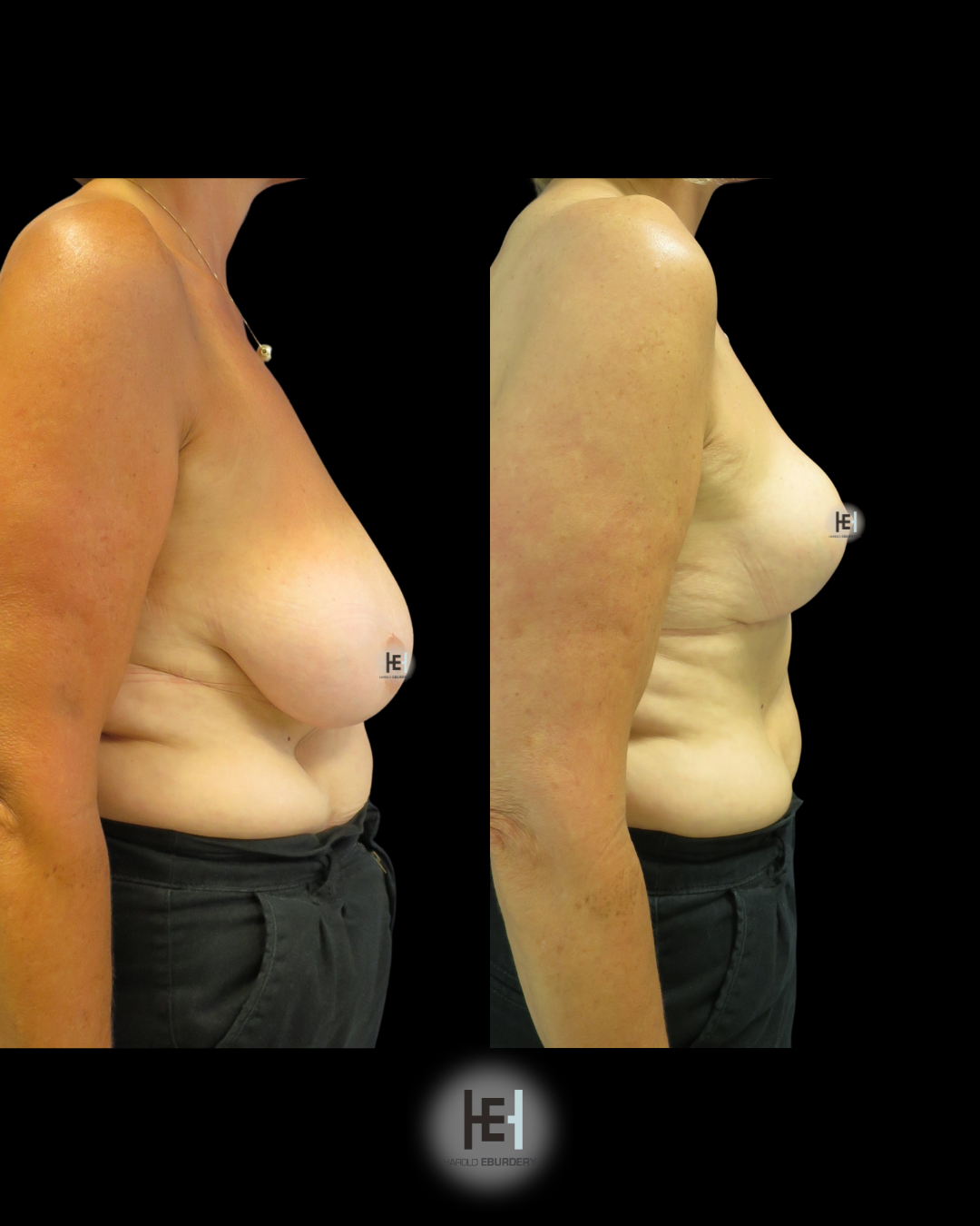 Avant / Après un lifting des seins sur une femme de 56 ans